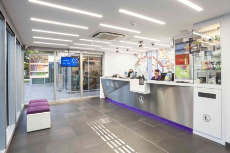 All the shops are fully accessible for the disabled and also have facilities to help the visually and hearing impaired. The rooms were designed and constructed with a modern and unified design, similarly to the customer centers built earlier.