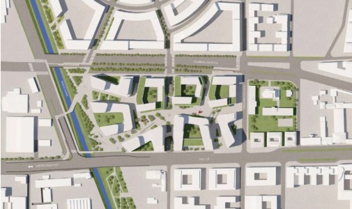 The total area encompasses more than 6 hectares, on which preparations for a complete new area of the city are underway. Several high-rise buildings with mixed functions will be built. The complex will be surrounded by an elevated platform with garages, shops as well as service areas under it.