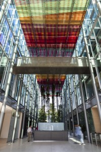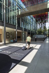 Due to change of ownership the Principal wanted to set up a new design in the office building. So the lobby and the surrounding area of the office building were refurbished. The main entrance of the lobby got a new, glass covered gate structure and a revolving door. The floor and wall coverages were replaced. The walls and the ceiling of the elevator lobby were fit out with table achoustic coverage. The lobby got a plain, colored glass false ceiling. The guest toilets, reception bar, restaurant, coffee shop, consumer areas, and tenancies of the providers were renewed. The public places connecting to the office were executed in accordance with the design of the distrtict and Népfürdő street.