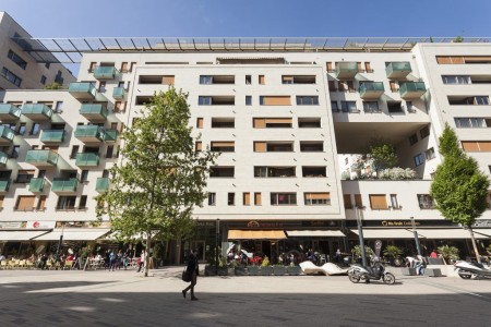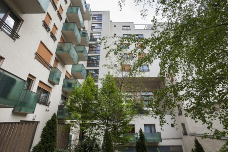 Fontana House is one of the most prominent buildings of Corvin Sétány. This is the first green residential investment in Hungary, using ground water for heating and cooling the apartments. The modern architectural features, a uniquely designed corner tower, the pierced facade and the unconventional use of wood, metal, textile and glass add up to a charismatic and dynamic building.