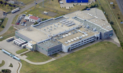 On the 27.5 hectare building site, a huge hall of 40 000 m2 was built with storage and production capacities. It has a prefabricated pillar structure made from reinforced concrete with 24 meter wide sections.
