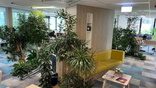 Jelenlegi irodánkat 2019 végén vettük birtokba. Kialakításánál törekedtünk arra, hogy zöld növényekkel színesítsük a belső tereket, ezért
